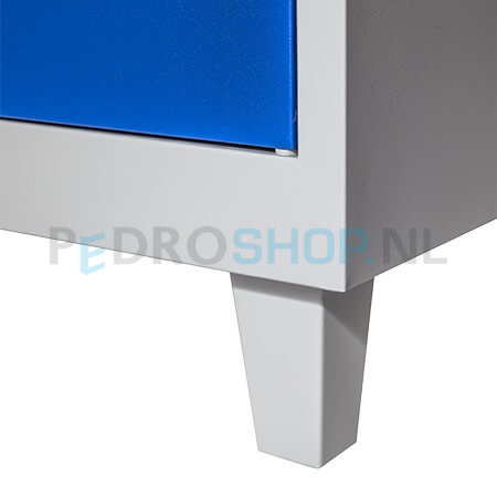 De lockerkast heeft een stevige gelaste staalconstructie en is afgewerkt met een gladde, krasvaste poedercoating. De volledig gladde deuren zijn rechtsdraaiend, openen tot 110 graden dankzij het RVS veerscharnier en sluiten zacht door de geïntegreerde stootdoppen. Voor extra stevigheid is de binnenzijde voorzien van een omegaprofiel. De achterwand is geperforeerd voor goede ventilatie.