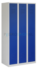 Garderobekast PDC-185, 3-kolom, 3-deurs, 90 cm breed, blauw
