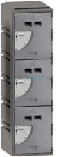 Dit model bestaat uit één kolom met drie deuren. De kolombreedte bedraagt 38 cm, de deuropening 30 cm en de binnenmaat 29 cm – ideaal voor het opbergen van een helm, jas of tas. De kast heeft een hoogte van 130 cm en een diepte van 45 cm.