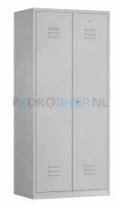 De PDC-250 garderobekast is een doordachte opbergoplossing met dubbele vleugeldeuren, ideaal voor het overzichtelijk opbergen van kleding en persoonlijke eigendommen. De kast is volledig uitgevoerd in lichtgrijs (RAL 7035), zowel de ombouw als de deuren, waardoor een rustige en uniforme uitstraling ontstaat in iedere kleedruimte of werkomgeving.
