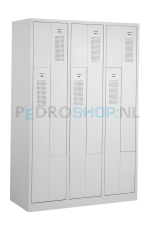 Deze Z-garderobekast PDC-240 kent 3 kolommen en 6 deuren. De PDC garderobekast heeft een stevige gelaste stalen constructie. De kast is afgewerkt met een krasvaste structuur poedercoating. Persoonlijke spullen bergt u veilig op in de PDC-240 Z-garderobekast, want deze PDC garderobekast is uitgevoerd met een uniek cilinderslot inclusief twee sleutels. Andere slotopties op deze kast zijn mogelijk.