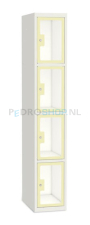 De SQ Classic Lockerkast met transparante deuren. De lockerkasten zijn naar eigen wens samen te stellen. Opties uit verschillende kleuren deuren en ombouw. Deze lockerkast kent voor de deuren de kleurcode: Crème Ral 1015 en voor de ombouw: Wit Ral 9010.