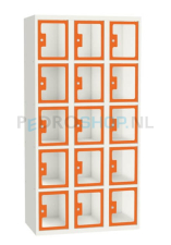 SQ Classic lockerkast, 3-koloms, 15-deurs, transparant venster, oranje, h180*b90*d50 cm