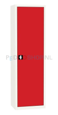 Deze draaideurkast is geheel na eigen wens samen te stellen. De draaideurkast kent voor de deuren de kleurcode: Rood ral 3020 en voor de ombouw: Wit ral 9010.