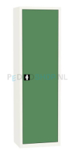 Deze draaideurkast is geheel na eigen wens samen te stellen. De draaideurkast kent voor de deuren de kleurcode: Groen ral 6011 en voor de ombouw: Wit ral 9010.