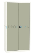 Deze draaideurkast is geheel na eigen wens samen te stellen. De draaideurkast kent voor de deuren de kleurcode: Kiezelgrijs ral 7032 en voor de ombouw: Wit ral 9010.