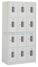 Lockerkast PDC-300, 3-koloms, 12-deurs, 90 cm breed, lichtgrijs
