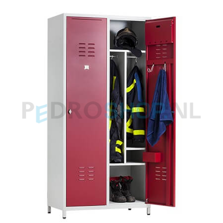 Brandweer garderobekast PDC-208, 2-koloms, 2-deurs, rood