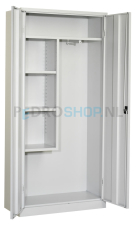De bezem, dweil, stofzuiger en overige schoonmaakmiddelen netjes opruimen achter slot? Zet hiervoor de PDC schoonmaakkast in. De PDC-180 bezem- schoonmaakkast is een stevige stalen kast welke beschikt over hanghaken voor opbergen van bezems en dweilen. Over de totale breedte van de kast treft u een legbord. Het linker gedeelte van de kast is voorzien van drie legborden. Doordat er een vrije ruimte is onder het onderste legbord, is er voldoende ruimte voor het opbergen van een stofzuiger en/of emmers. Het rechter gedeelte van de kast kent een kledingroede met verschuifbare haken.