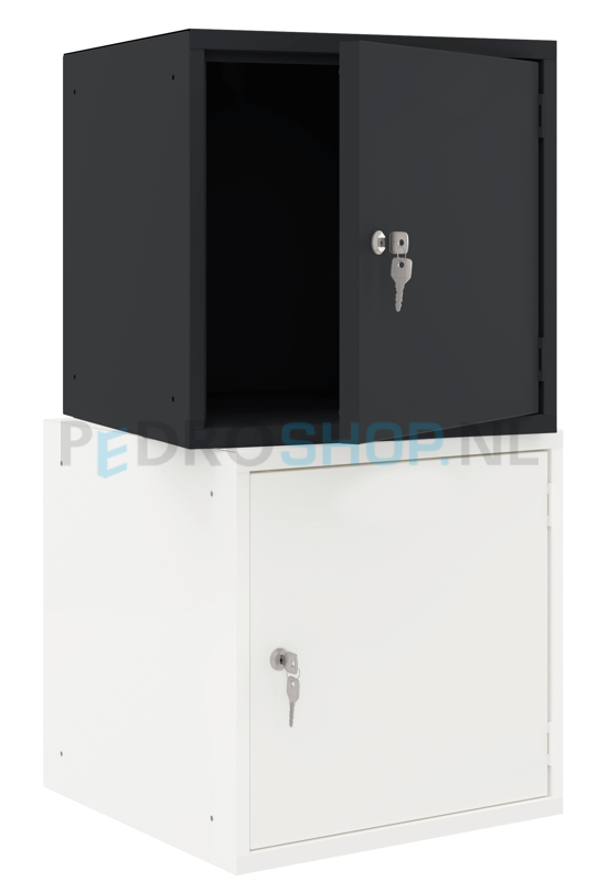 Deze cube locker PDC-445 wordt geleverd in de kleur antraciet RAL7021. Zowel de ombouw als de deur kent deze kleur wit.