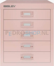 Meerladenkast Bisley-5, A4 formaat, 5 laden, handgreep gekleurd, roze