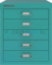 Meerladenkast Bisley-5, A4 formaat, 5 laden, handgreep gekleurd, zeegroen