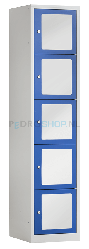 Lockerkast PDC-330, 1-koloms, 5-deurs, transparant venster, blauw