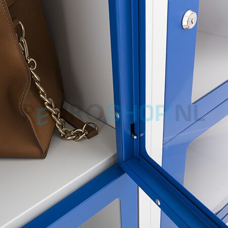 Elke deur is uitgerust met een transparant acryl venster in een stalen omhuizing, leverbaar in lichtgrijs of blauw. Hierdoor is direct zichtbaar of een locker in gebruik is en welke items erin liggen. Ideaal voor scholen, sportlocaties, bedrijven en openbare ruimten waar controle gewenst is.