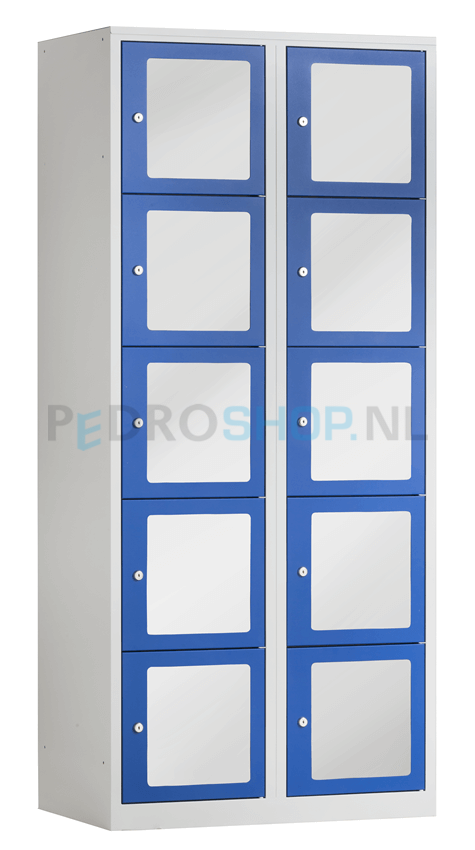 Lockerkast PDC-330, 2-koloms, 10-deurs, transparant venster, blauw
