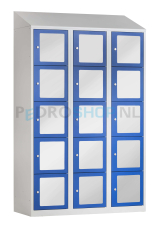 Lockerkast PDC-330, 3-koloms, 15-deurs, transparant venster, blauw