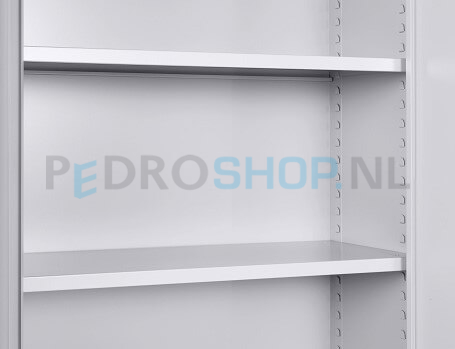 Bijgeleverd worden 4 legborden. De legborden zijn geschikt voor opbergen van laterale hangmappen met een spoorbreedte van 33 cm. Maakt u gebruik van ordners? Dan kunnen er in de PDC-180 4 ordnerrijen hoog worden opgeborgen. De legborden kunnen op gewenste hoogte in de kast worden geplaatst. Om de 3,5 cm kent de kast de mogelijkheid om legborden te plaatsen. De legborden kunnen een maximaal verdeeld gewicht dragen van 50 kg.