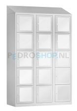Lockerkast PDC-330, 3-koloms, 15-deurs, transparant venster, lichtgrijs