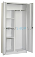 De bezem, dweil, stofzuiger en overige schoonmaakmiddelen netjes opruimen achter slot? Zet hiervoor de PDC schoonmaakkast in. De PDC-T195 bezem- schoonmaakkast is een stevige stalen kast welke beschikt over hanghaken voor opbergen van bezems en dweilen. Over de totale breedte van de kast treft u een legbord. Het linker gedeelte van de kast is voorzien van drie legborden. Door het doorlopende tussenschot ontstaat er meer legruimte in de kast. Doordat er vel legruimte is, is er voldoende ruimte voor het opbergen van schoonmaakartikelen. Het rechter gedeelte van de kast kent een kledingroede met verschuifbare haken.