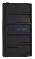 De folderkast van PDC is 195 cm hoog, 100 cm breed en 42 cm diep. De kast kent een stevig gelaste constructie. De folderkast is afgewerkt met een krasvaste poedercoating. De folderkast is leverbaar in de kleuren aluminium RAL9006, lichtgrijs RAL7035, zwart RAL9005 en wit RAL9010. Dezelfde kleuren als de PDC draaideur-, roldeur- en dossierkasten. Zo kan er een mooie combinatie gemaakt worden van de verschillende beschikbare archiefkasten van PDC.
