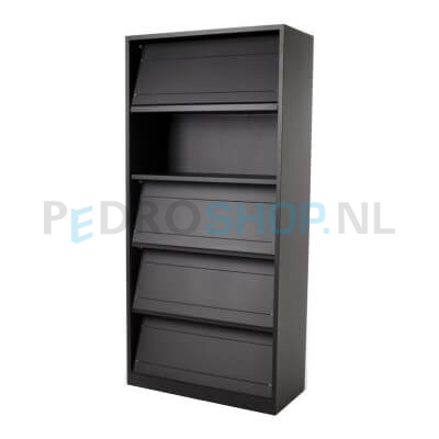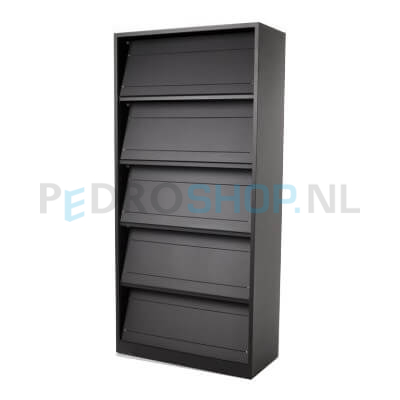 Een folderkast van PDC kent maar liefst 5 kantelbare legborden voor opbergen en ten toonstellen van verschillende folders en/of documentatie. De kantelbare legborden maken dat er achter de legborden voldoende ruimte is voor opbergen van de extra exemplaren.