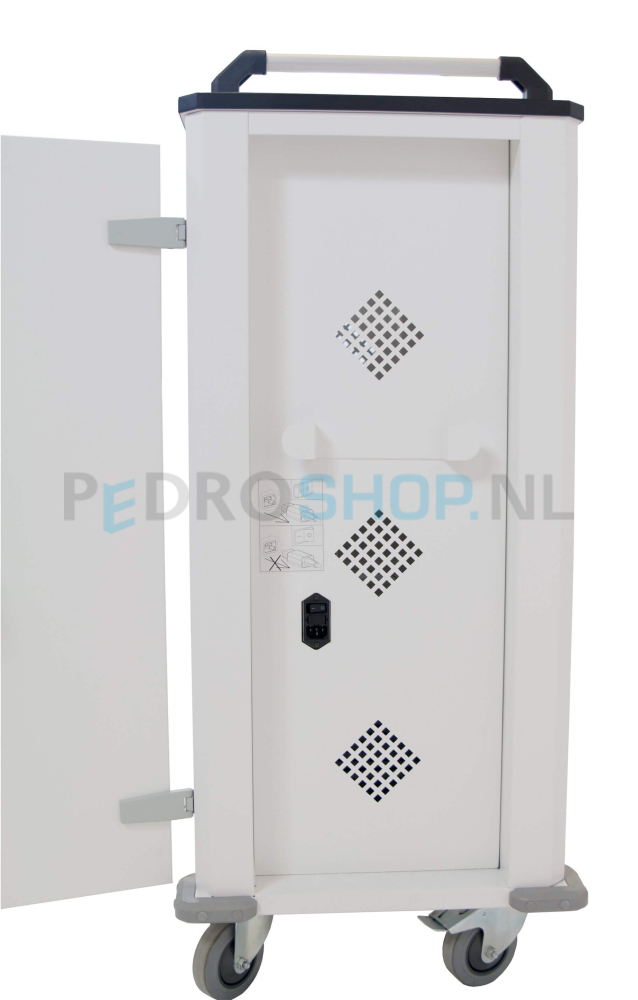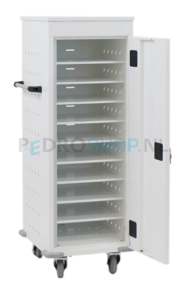 Deze SQ laptop trolley is geschikt voor de opberging van 10 laptops. Tevens is de ruimte te gebruiken voor tablets of smartphones. De laptop trolley is voorzien van stroomvoorziening voor alle laptops (ieder vak is voorzien van een stroompunt).