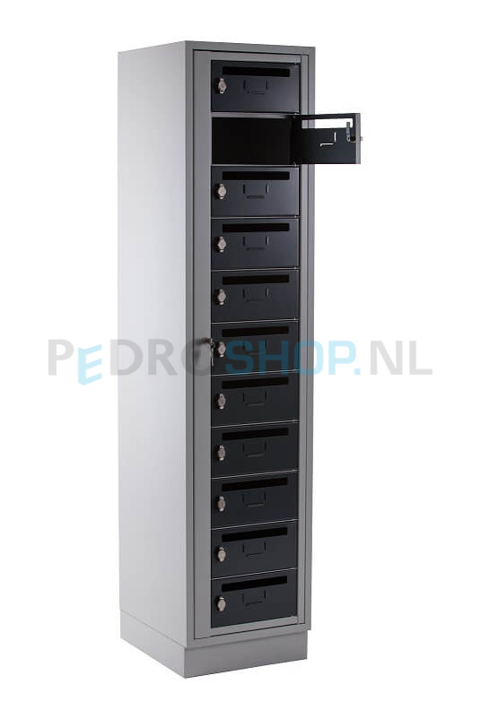 SQ Classic postvakkenkast, 11-deurs, op sokkel, antraciet