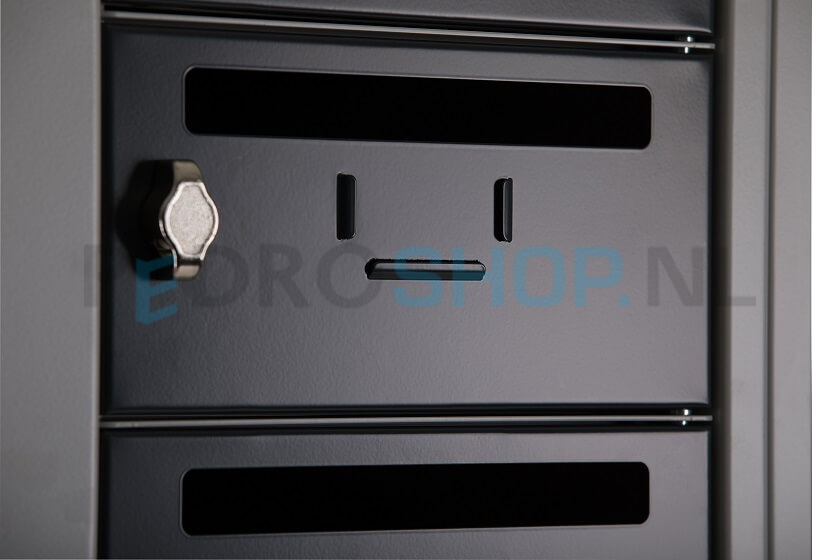 De postvakkenkast beschikt over een centrale deur. Deze centrale deur biedt toegang voor het eenvoudig verdelen van de post. De centrale deur beschikt over een cilinderslot. Ieder postvak is afzonderlijk voorzien van een eigen valgrendelsluiting. Ook is er de mogelijkheid om de postvakken te voorzien van cilindersloten. Op aanvraag kunnen er ook mechanische cijfersloten of elektronische pincode sloten gemonteerd worden op de postvakken. Let wel op dat bepaalde sloten een levertijd kennen, dit kan op aanvraag besproken worden.