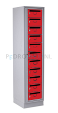 SQ Classic postvakkenkast, 11-deurs, op sokkel, rood