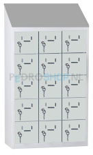 Met een afmeting van h109 x b62 x d30 cm biedt de kast voldoende ruimte voor 15 mini lockers, verdeeld over 3 kolommen met ieder 5 lockers. Elke locker heeft een afmeting van h16 x b15 x d27 cm.