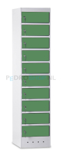 De SQ Classic laptopkast – Deze SQ Classic laptopkast kent 1 kolom met totaal 10 laptopvakken. Deze SQ laptopkast is NIET voorzien van stroomvoorziening.